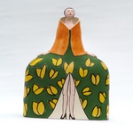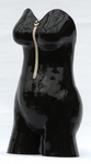 De rondingen van het vrouwelijk lichaam inspireren mij tot het maken van torso's. Decoraties breng ik vooral aan met gekleurde engobes en vervolgens met transparante glansglazuur. En op zoek naar nieuwe uitdagingen ontstaan dan driehoeksvrouwtjes en vrouwen in grijze klei. Ik raak met klei nooit uitgewerkt.